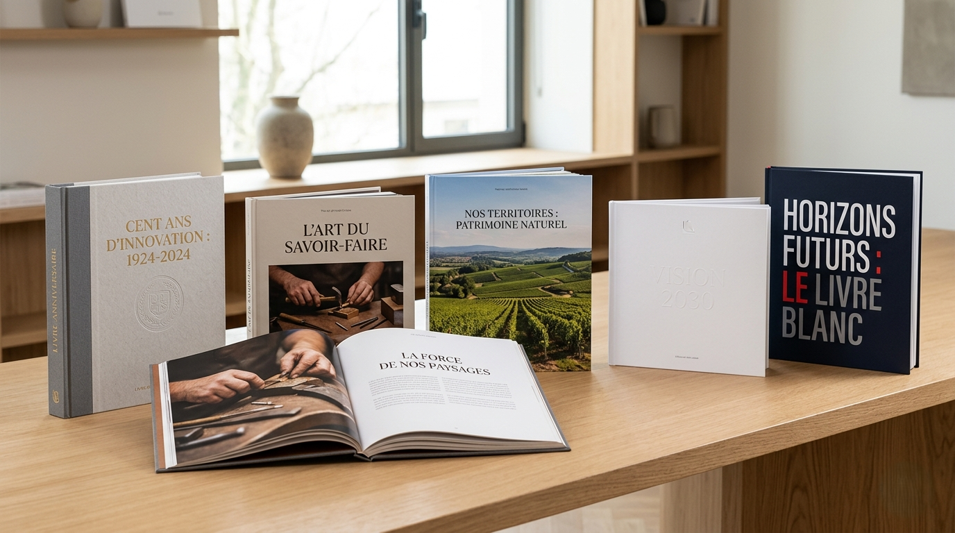 C’est un format particulièrement pertinent pour les entreprises qui souhaitent se différencier, ou porter un discours. Bien réalisé, ce type de livre devient un véritable outil d’image.
