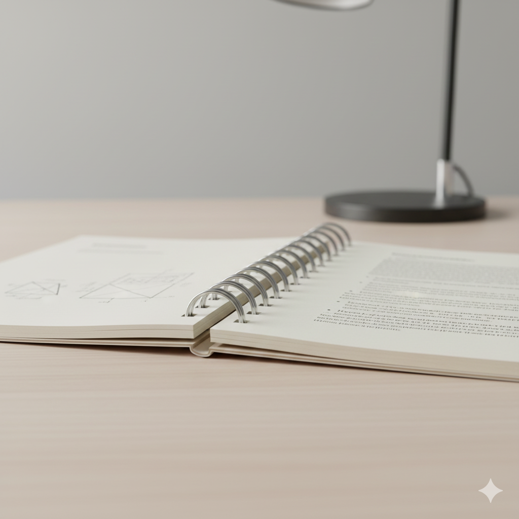 Le point fort majeur de la reliure spirale est son ouverture totale. Le document peut s’ouvrir parfaitement à plat et même se replier à 360°, ce qui améliore fortement la lisibilité et la prise de notes, notamment sur table, pupitre, établi ou poste de travail.